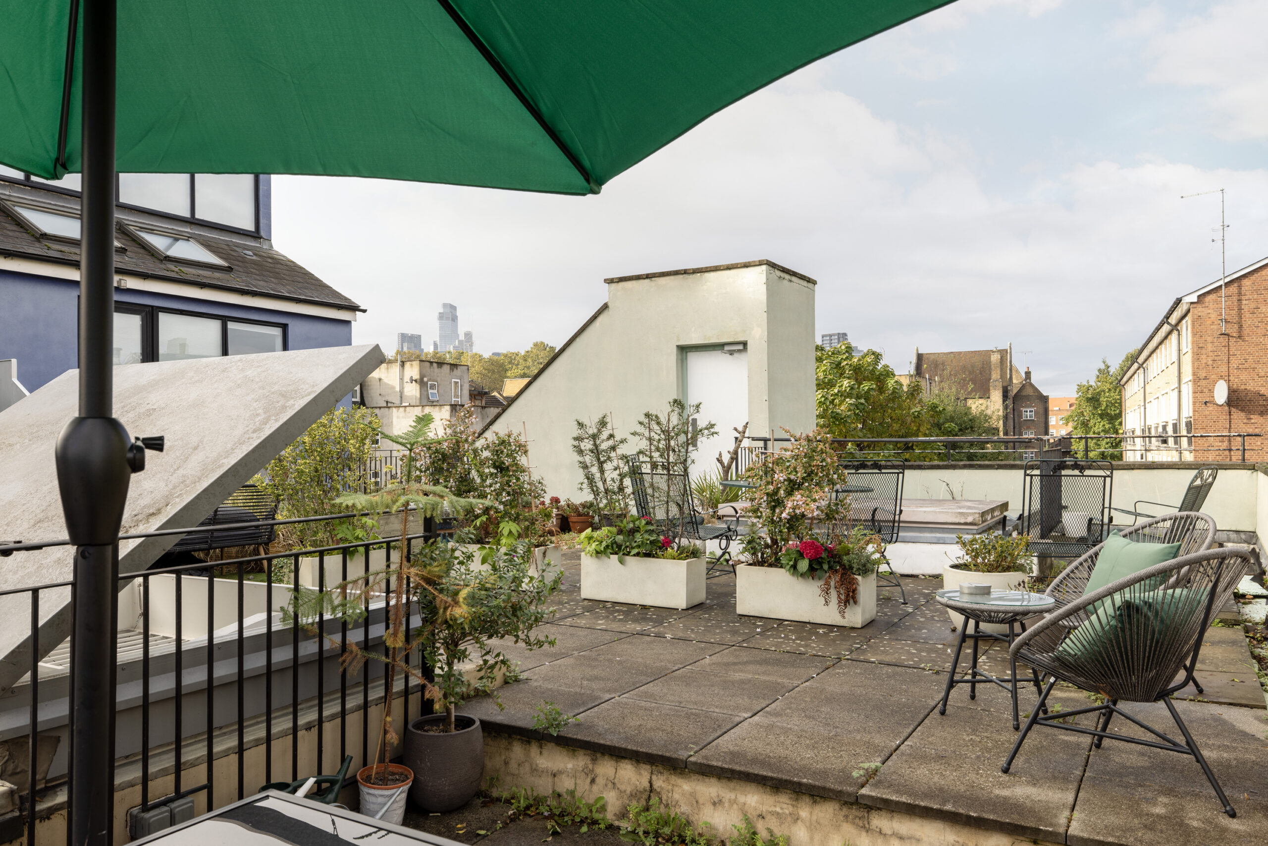 Set within a former garment factory, this three-bedroom warehouse conversion with roof terrace in trendy Shoreditch is an exhilarating showcase of modern design, re-calibrating a powerful industrial space for sophisticated city living.