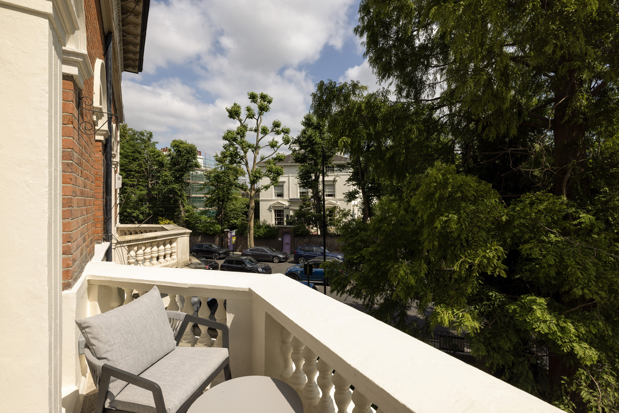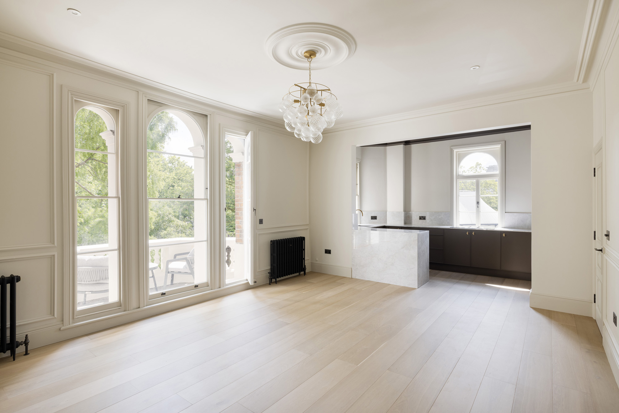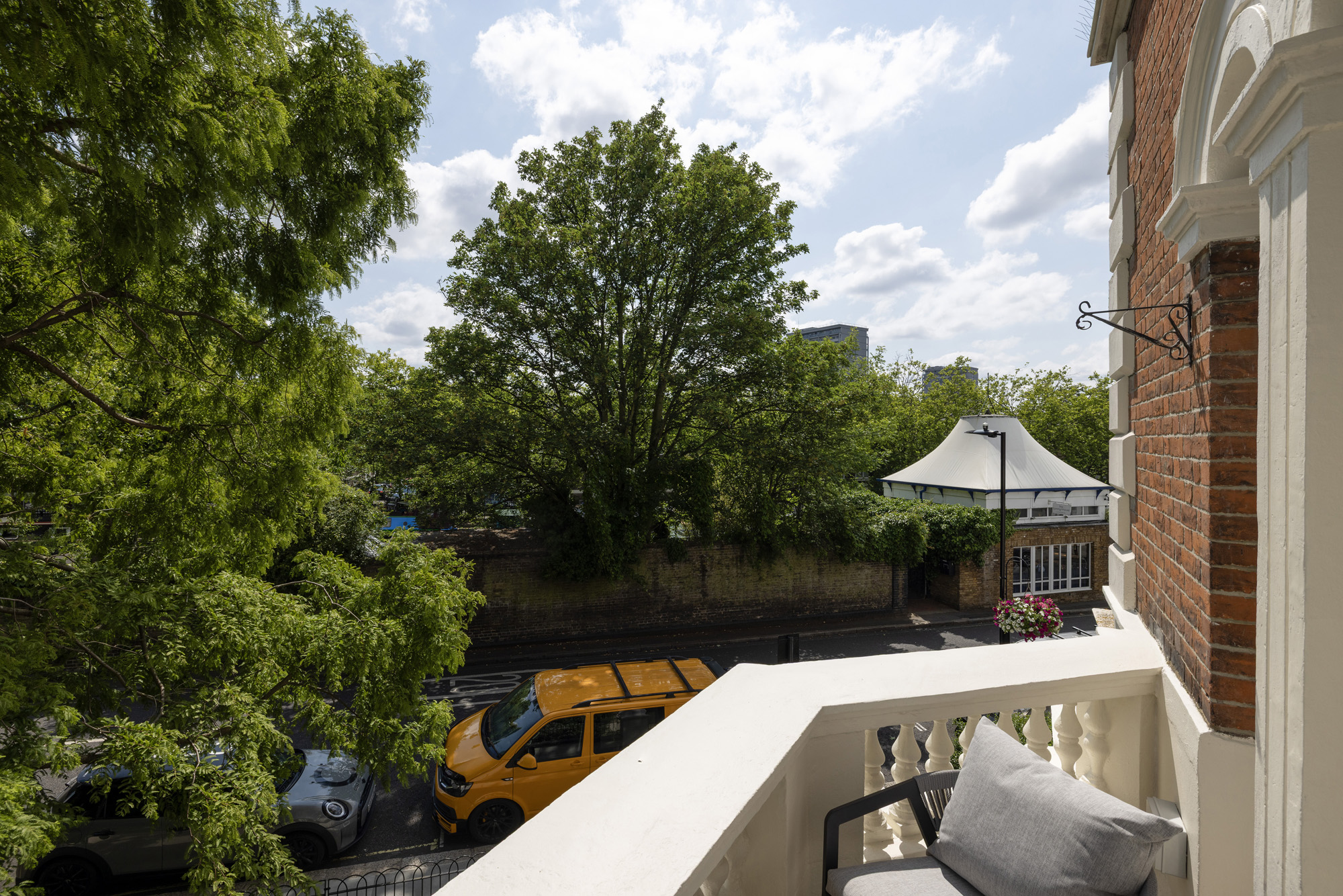 Positioned on one of the area’s most iconic streets, this apartment sits within a grand stucco-fronted villa dating back to the early Victorian era. For rock ‘n’ roll aficionados, the home across the road belongs to Ronnie Wood of The Rolling Stones.