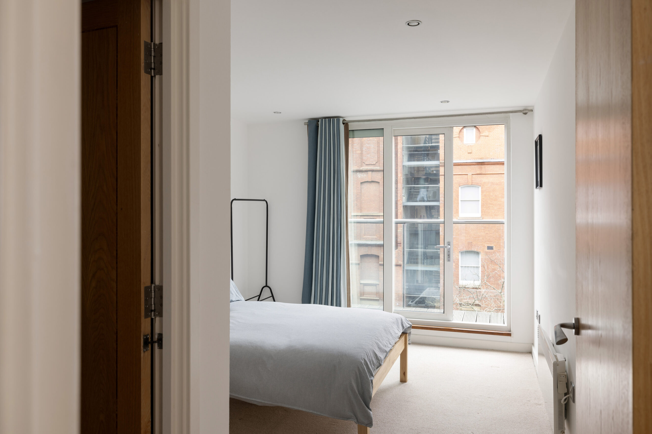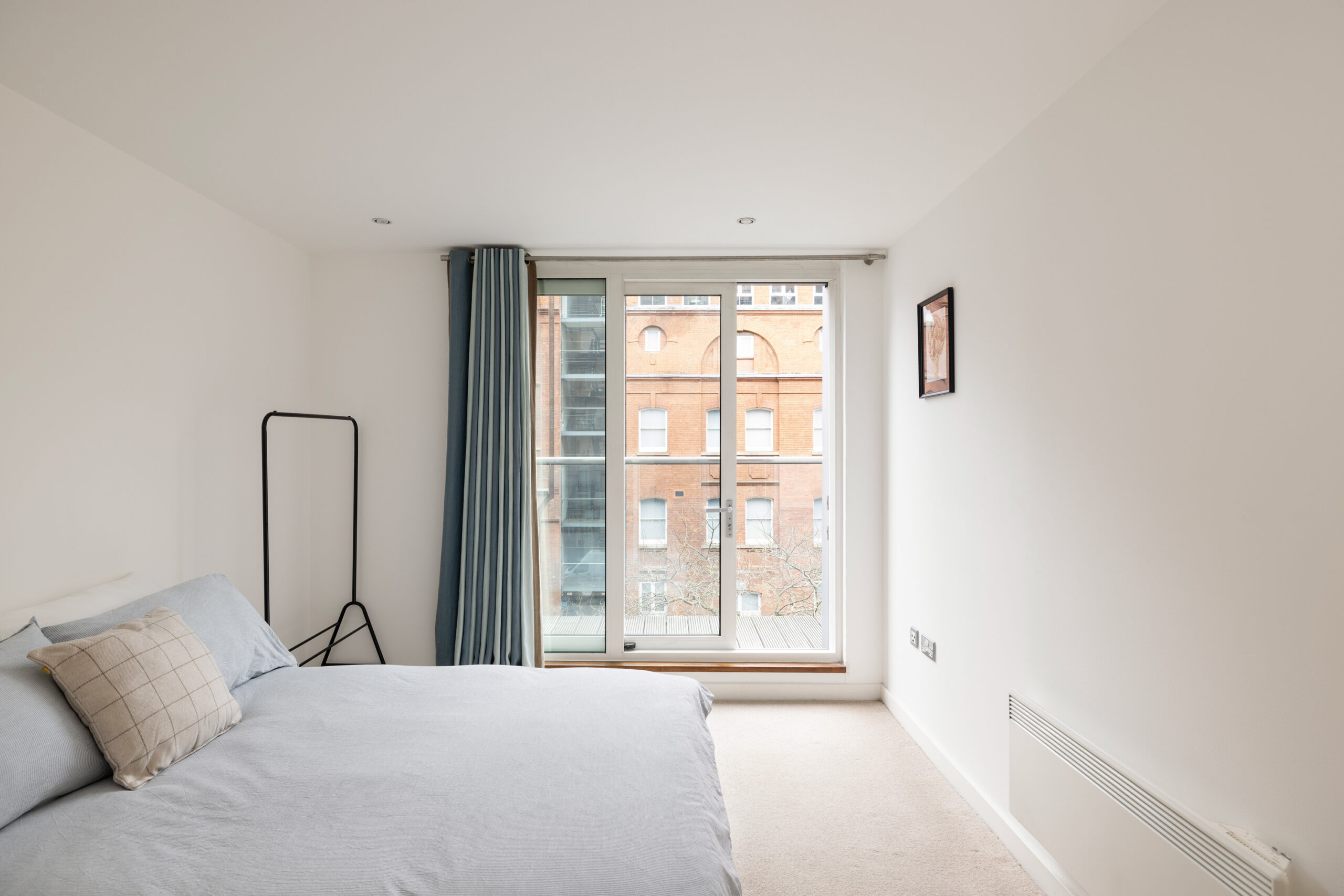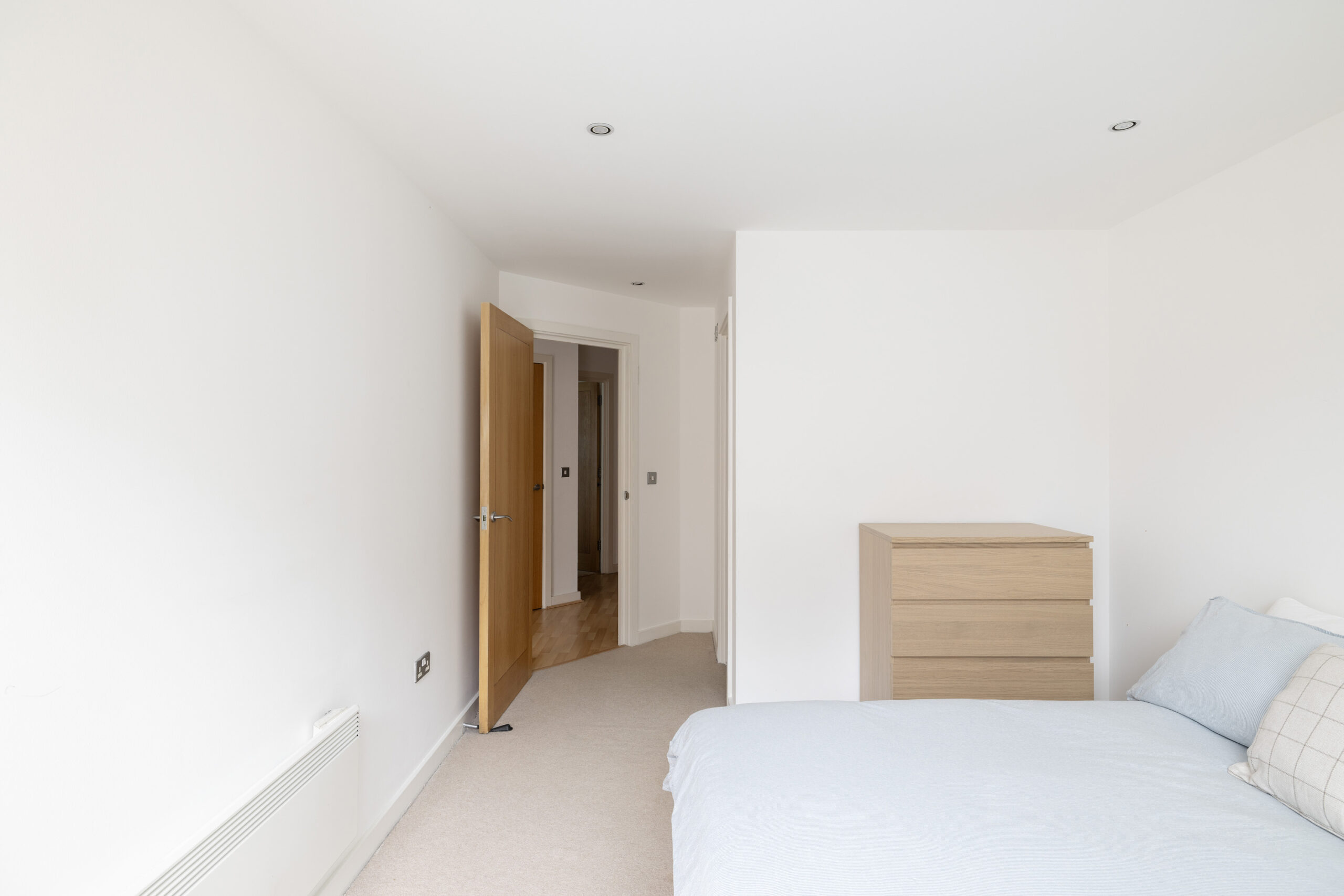 The master bedroom with purpose-built en-suite is bright and spacious, with further access to the private balcony. The rest of the apartment is comprised of a second double bedroom and main bathroom with shower over bath. The apartment further benefits further from underground bicycle storage and a 24-hour concierge.