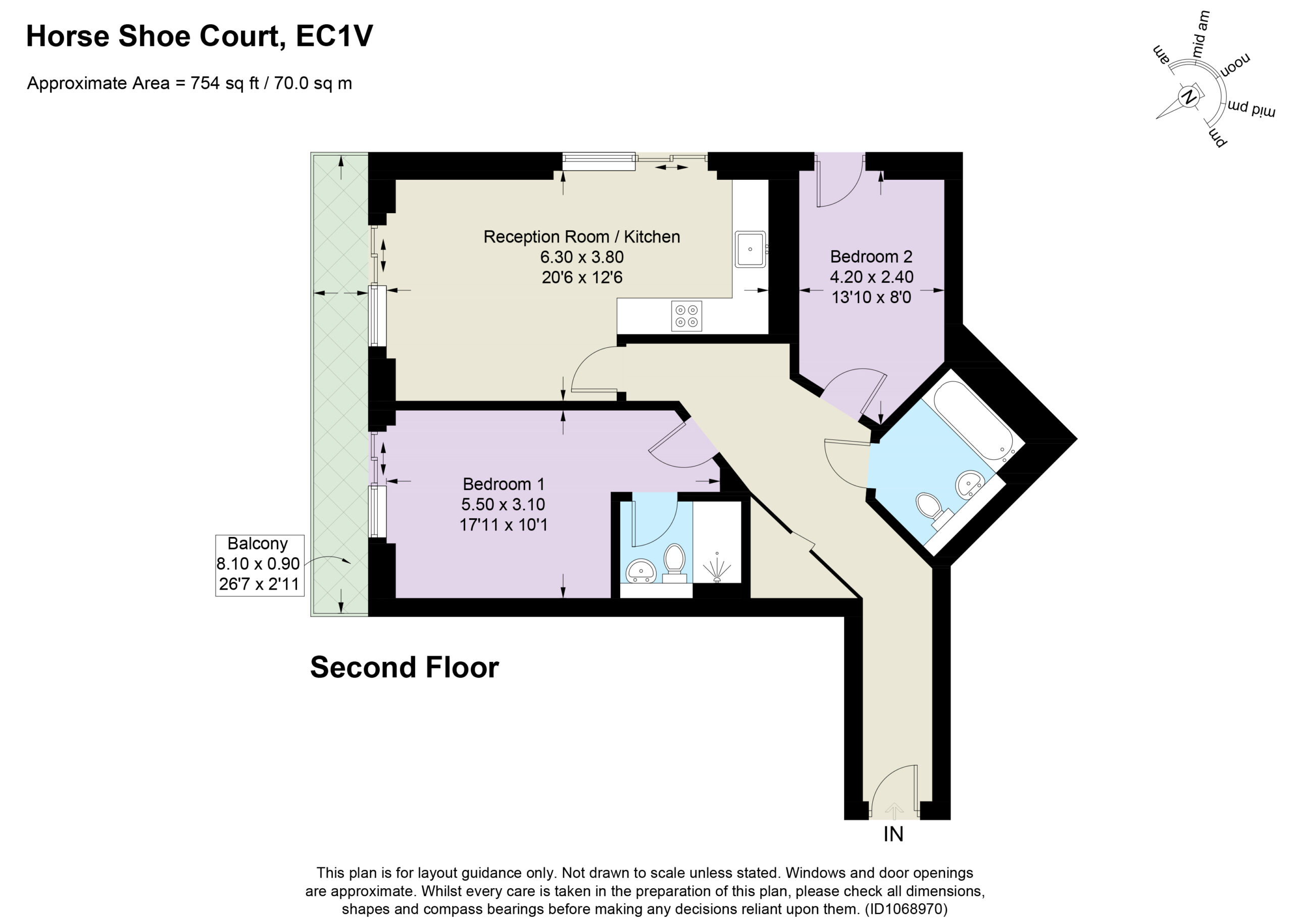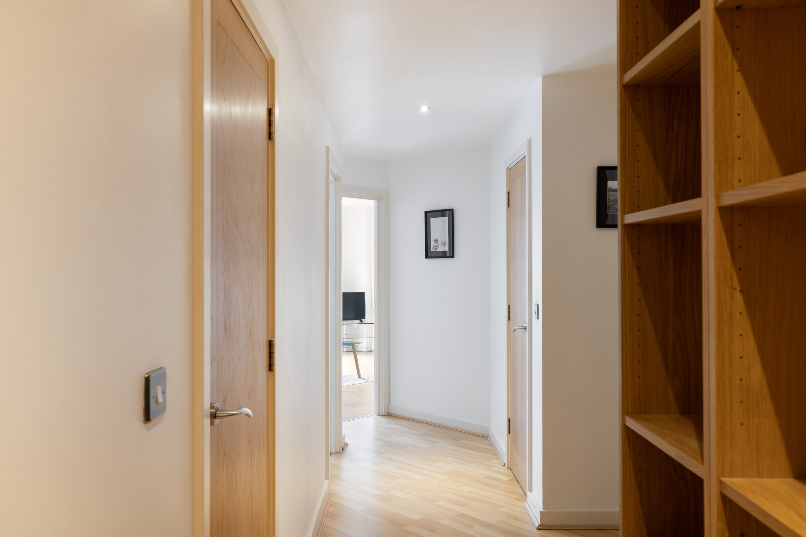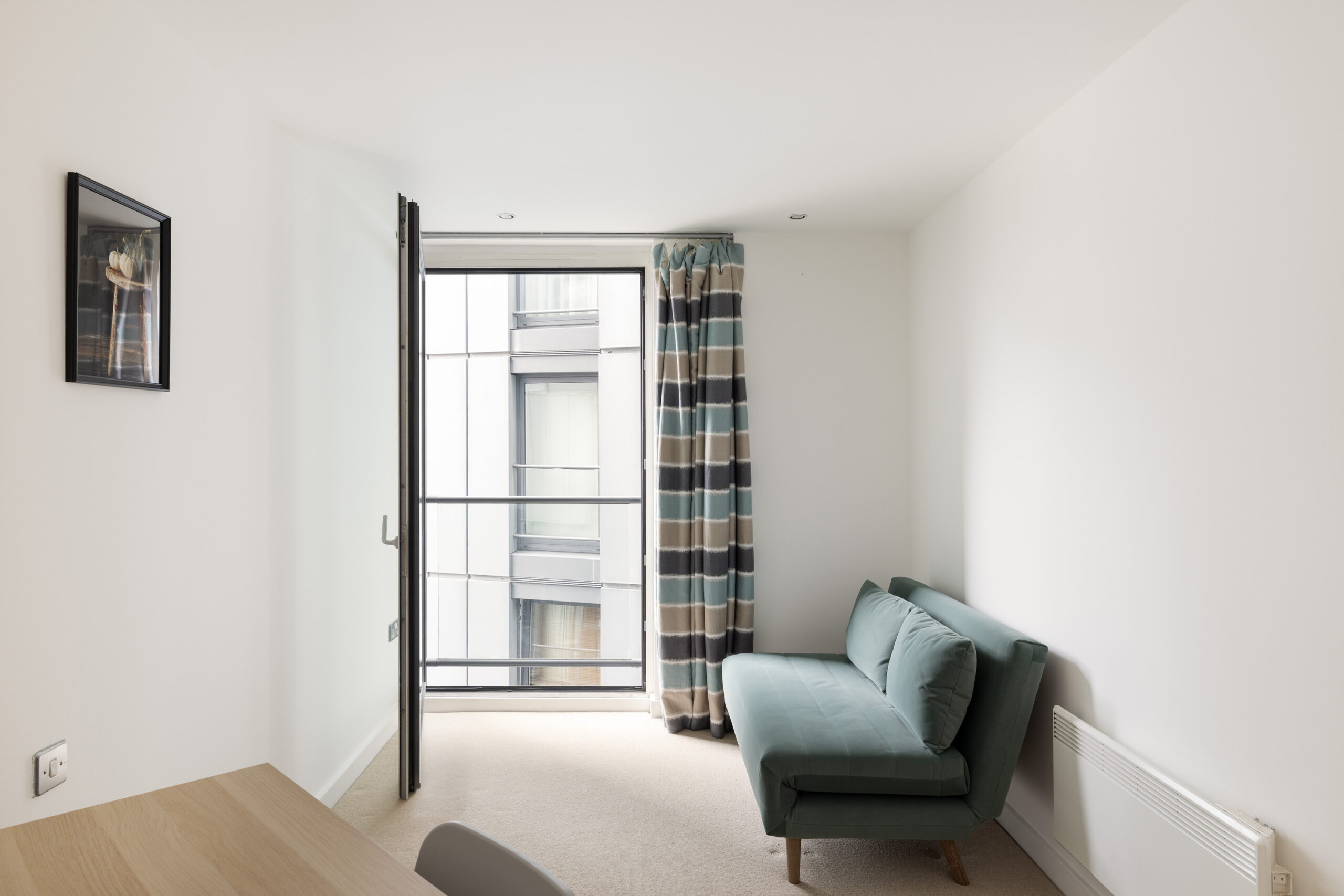 The master bedroom with purpose-built en-suite is bright and spacious, with further access to the private balcony. The rest of the apartment is comprised of a second double bedroom and main bathroom with shower over bath. The apartment further benefits further from underground bicycle storage and a 24-hour concierge.