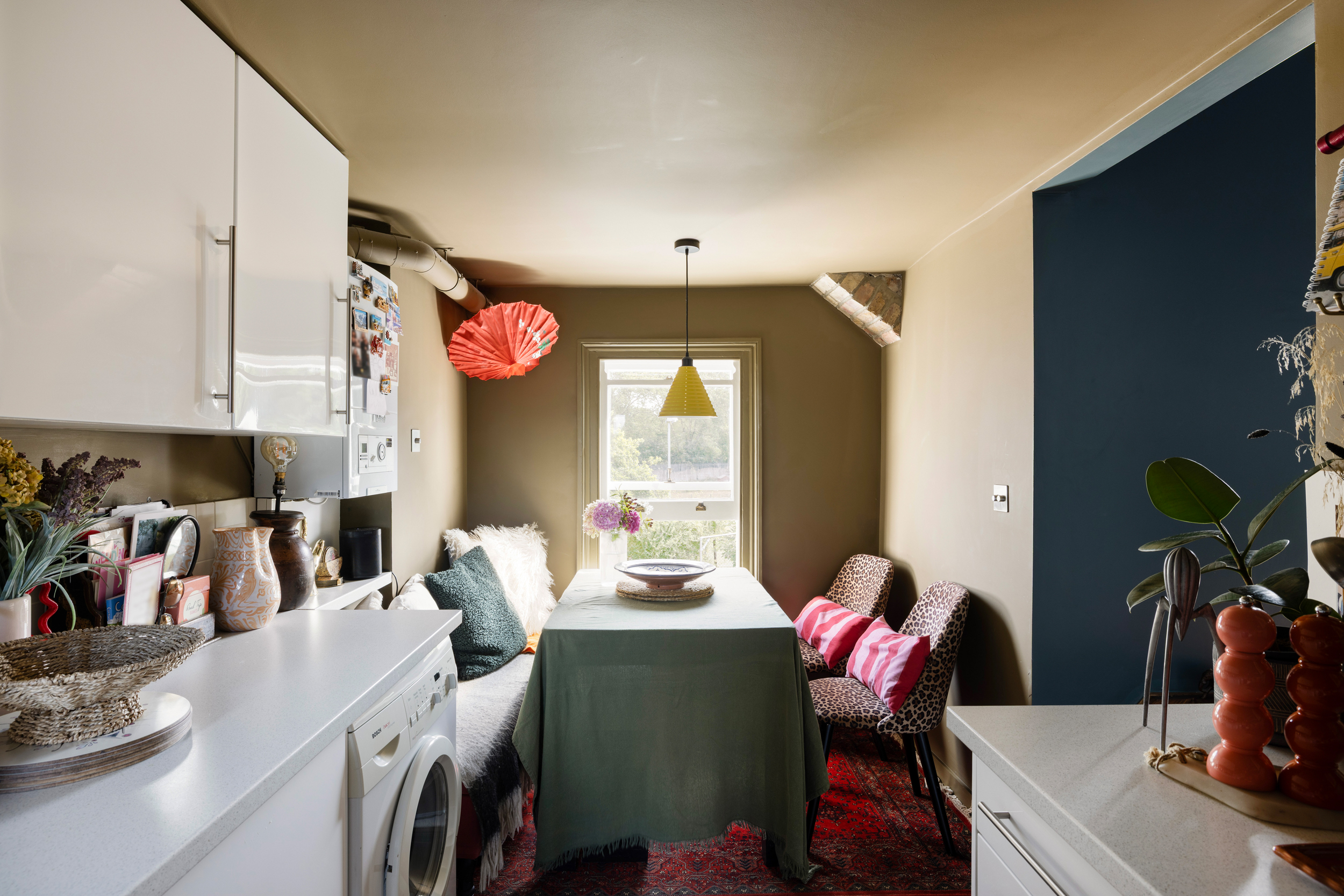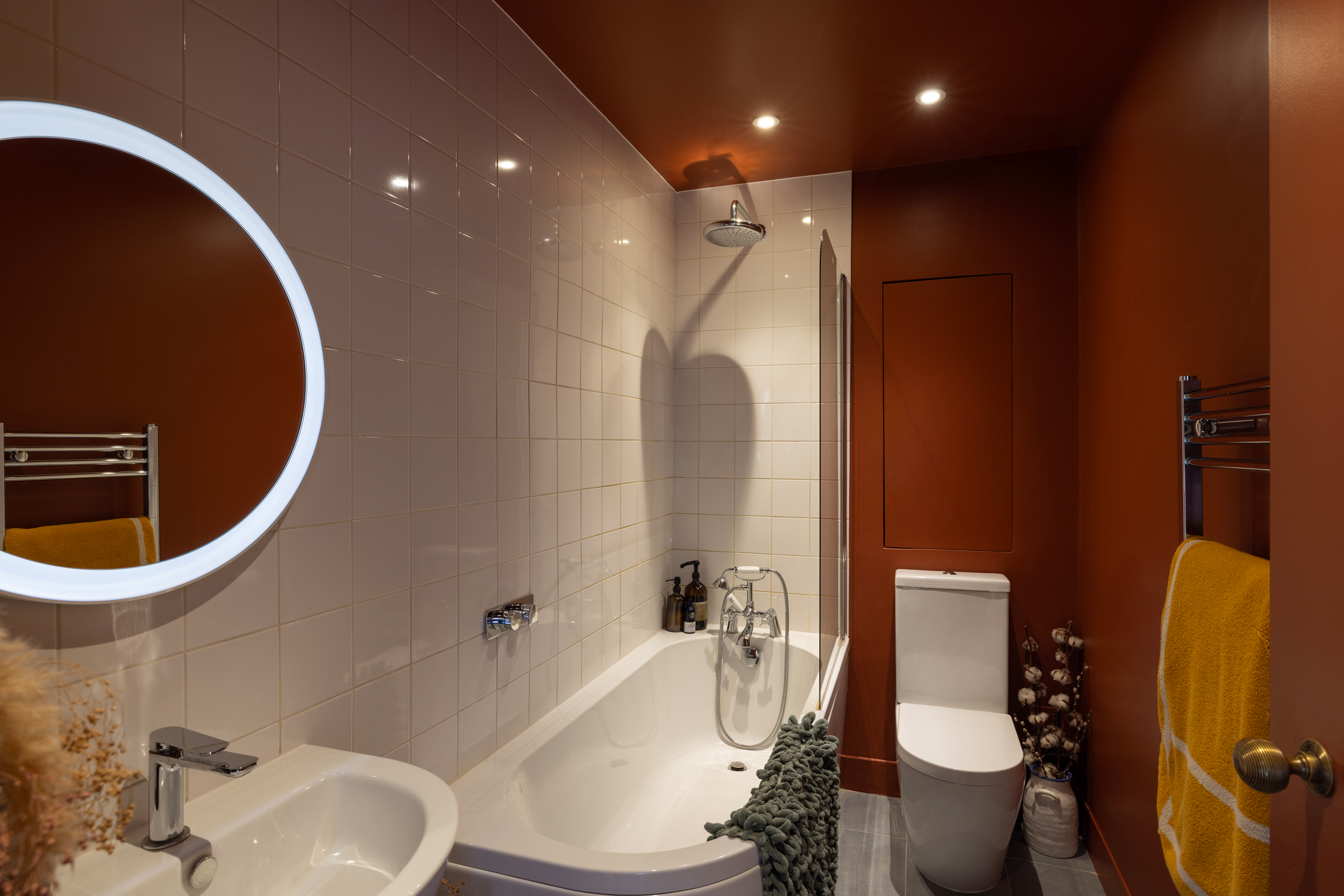 From the moment you enter, vibrant colour and thoughtful detailing signal that this is not your average flat. The entrance hallway is a sunny greeting, painted in bright lemon-yellow, while the bathroom, a terracotta refuge, features underfloor heating and contemporary fittings. The lovingly restored original floorboards are a masterstroke beneath.