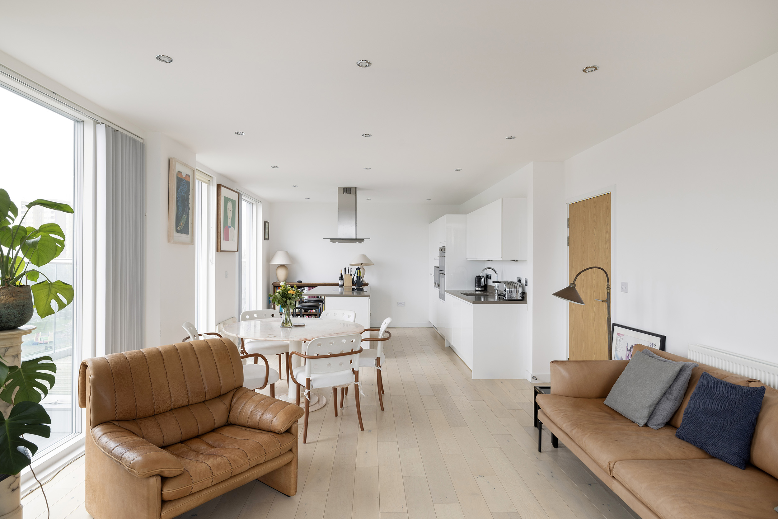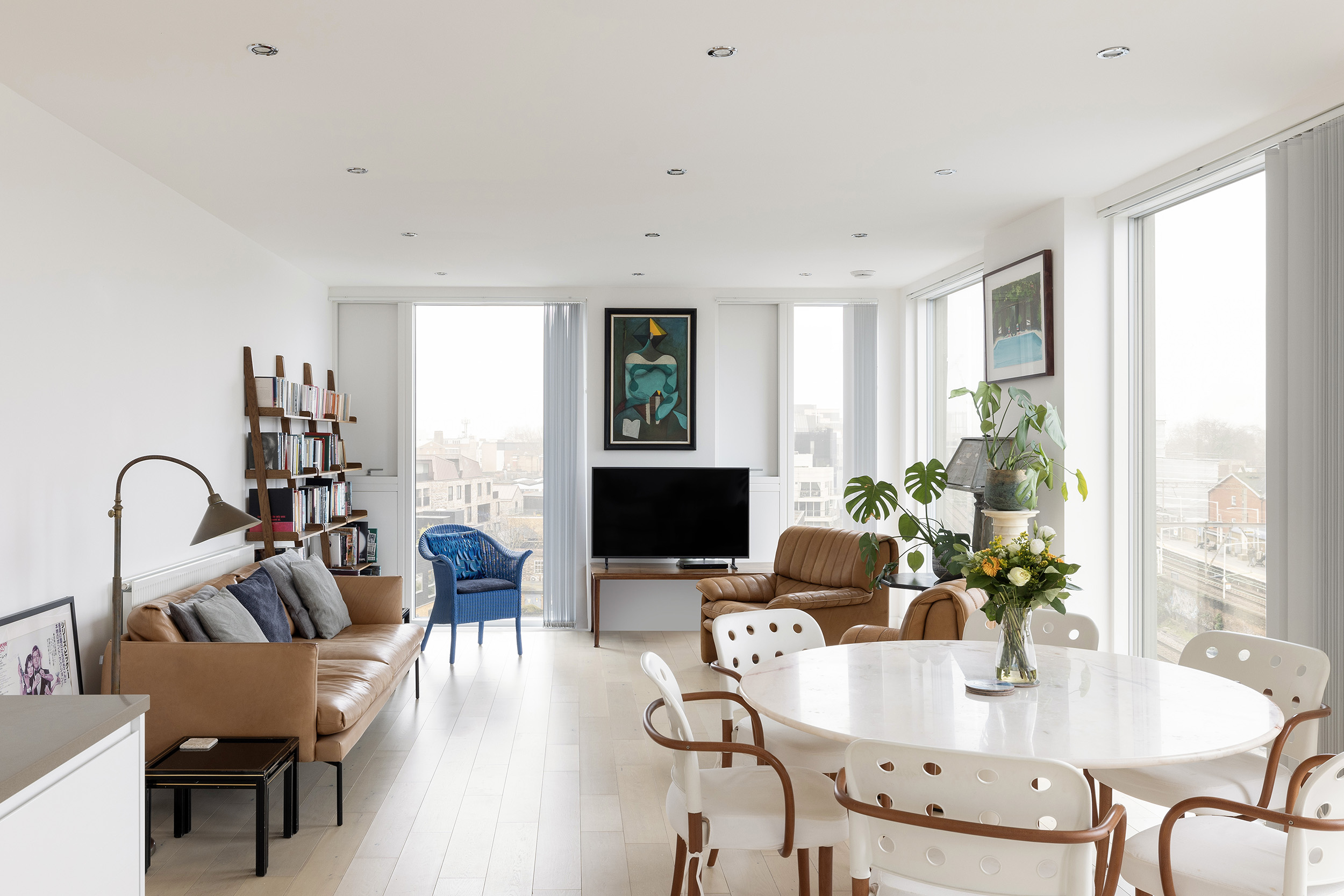 This expansive three-bedroom penthouse, overlooking the historic London Fields, is a contemporary paragon with distinctive retro flair.