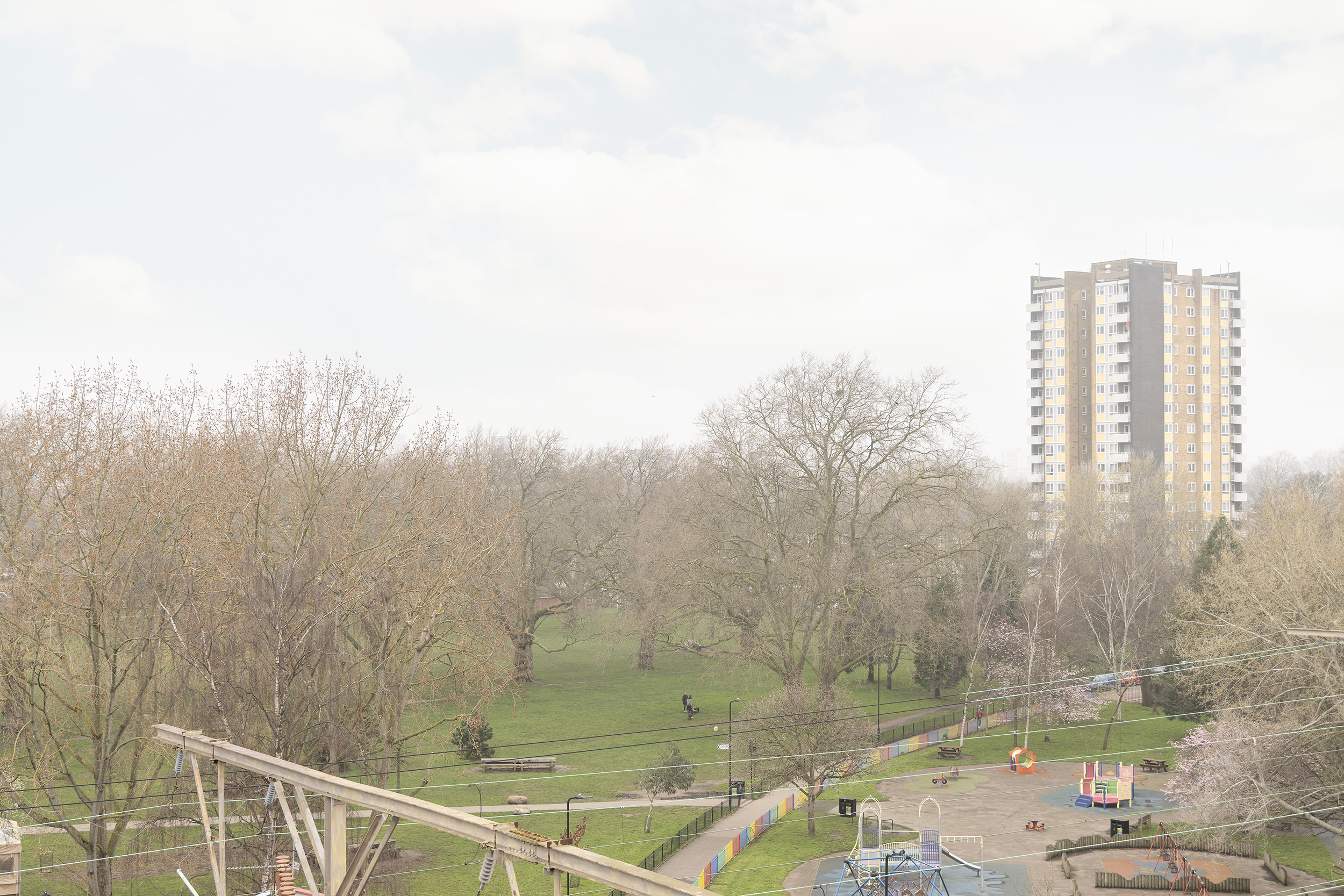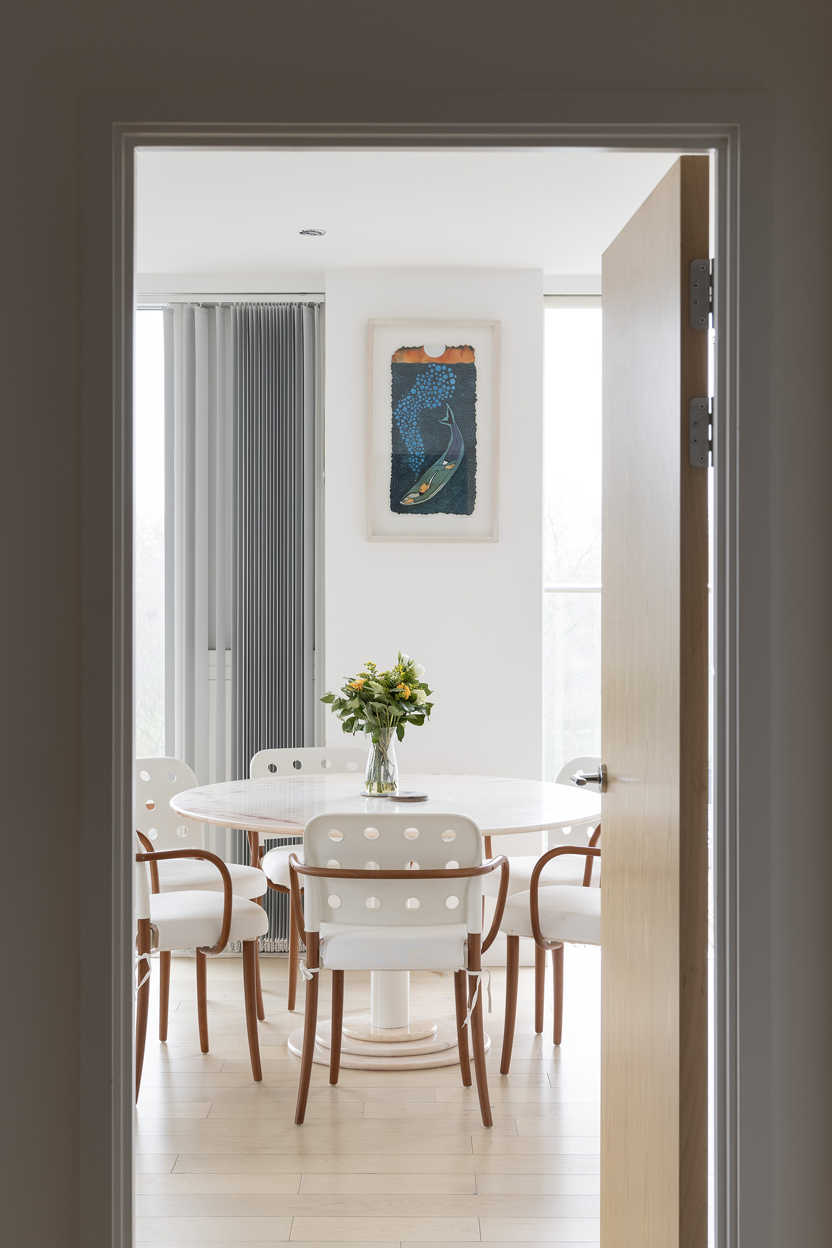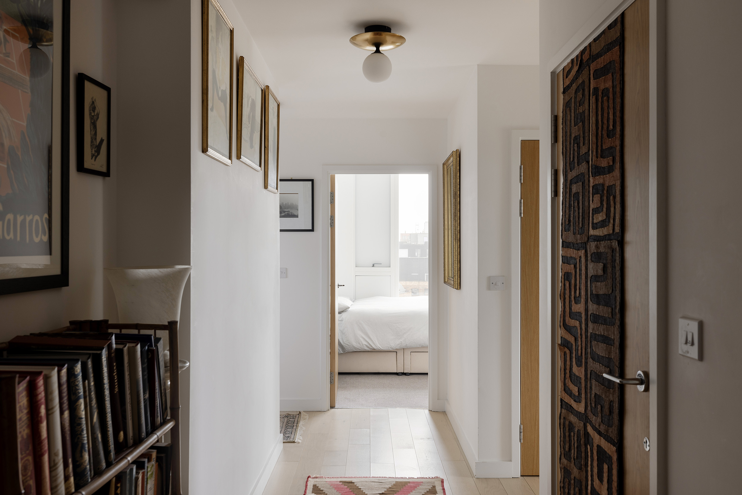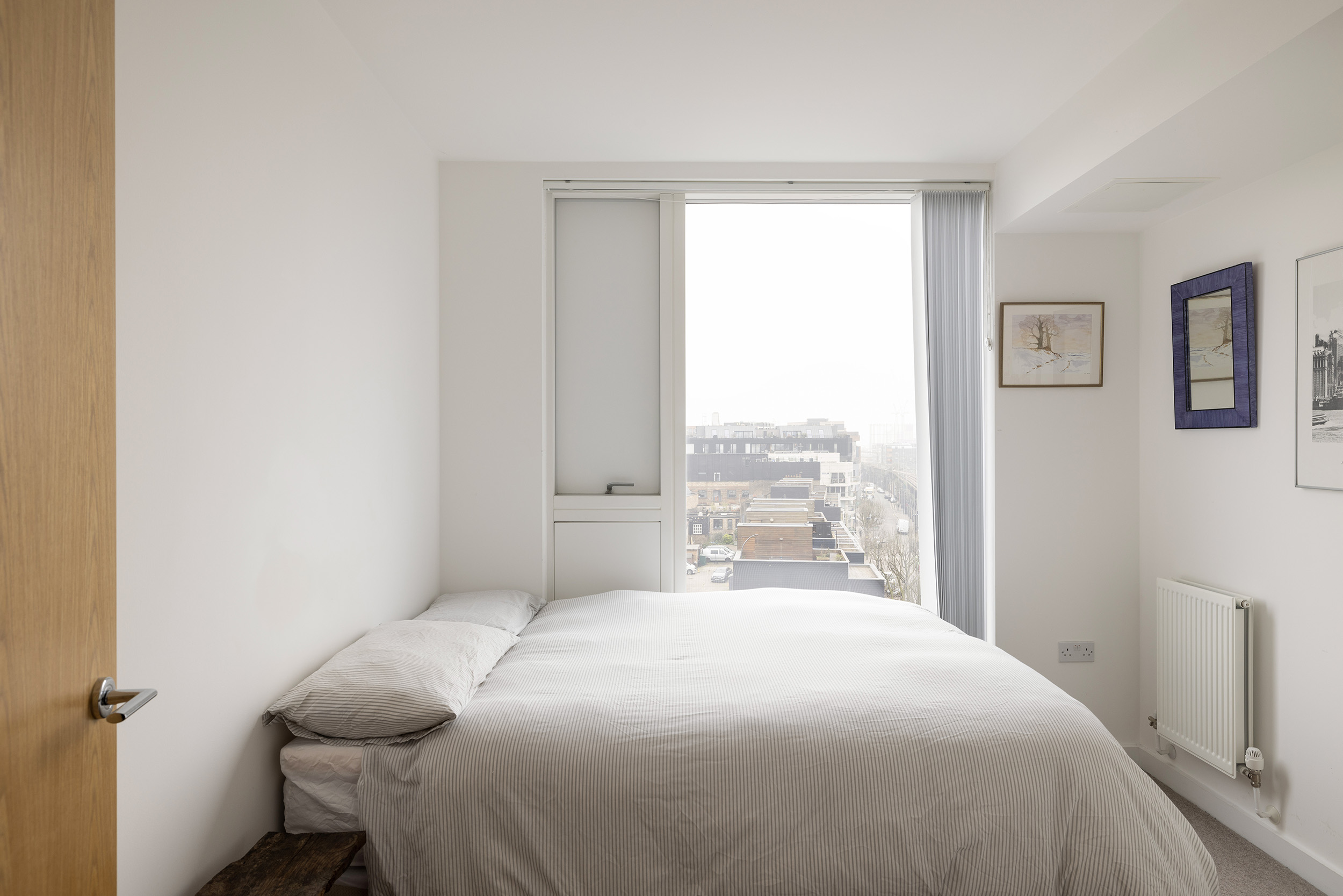 The main hub of the penthouse—a 35ft open-plan kitchen reception—is, in itself, a glorious observatory. Lit triumphantly by massive panoramic windows, the surrounding area—an exciting agri-industrial world of bristling trees, green parks, railway tracks and skyscrapers—can be gleefully studied or hidden away by vertical shutters that feel charmingly imitative of 80’s galleries.