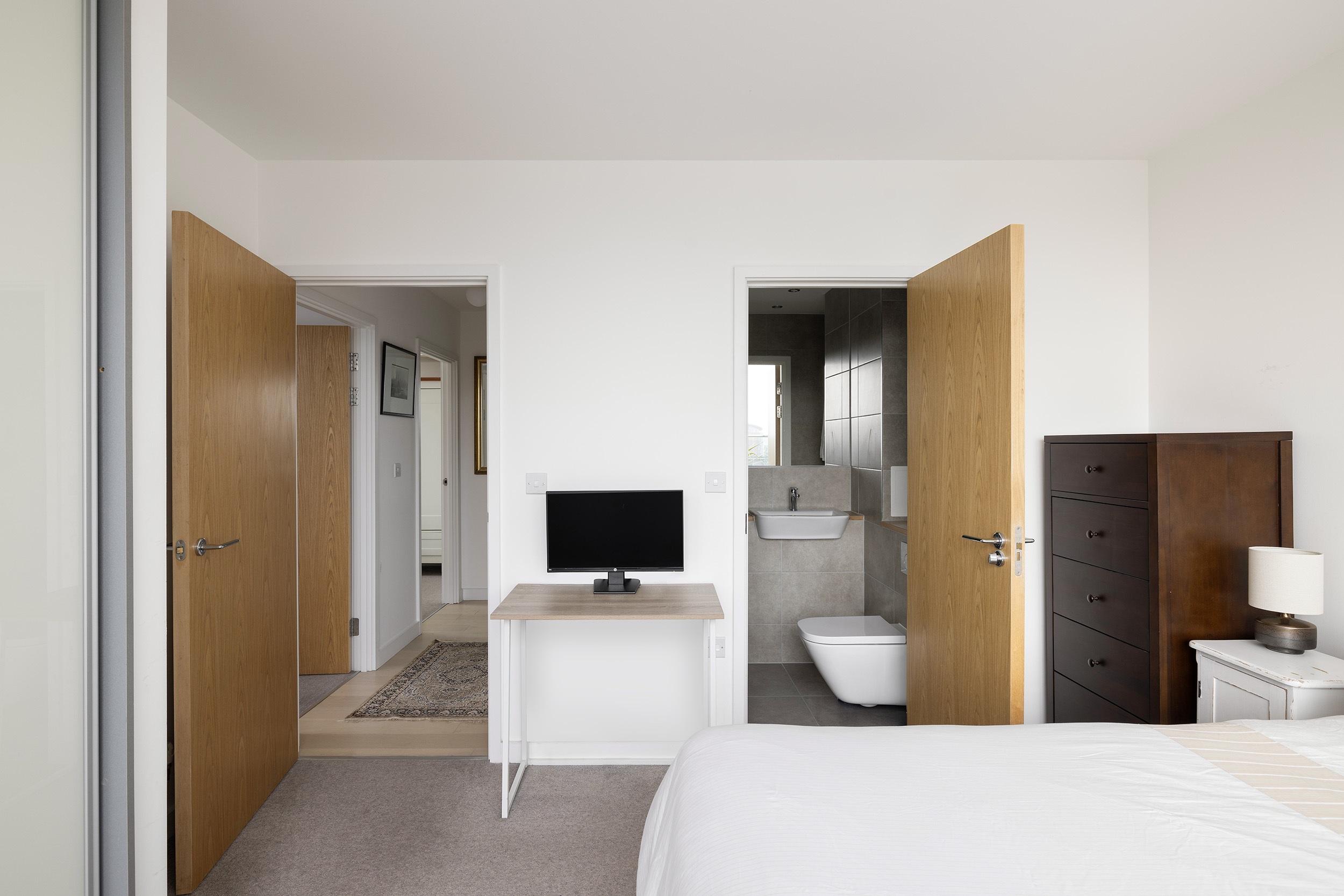 The primary bedroom, with its en-suite, is a generous size and has its own concrete and glass balustrade terrace.