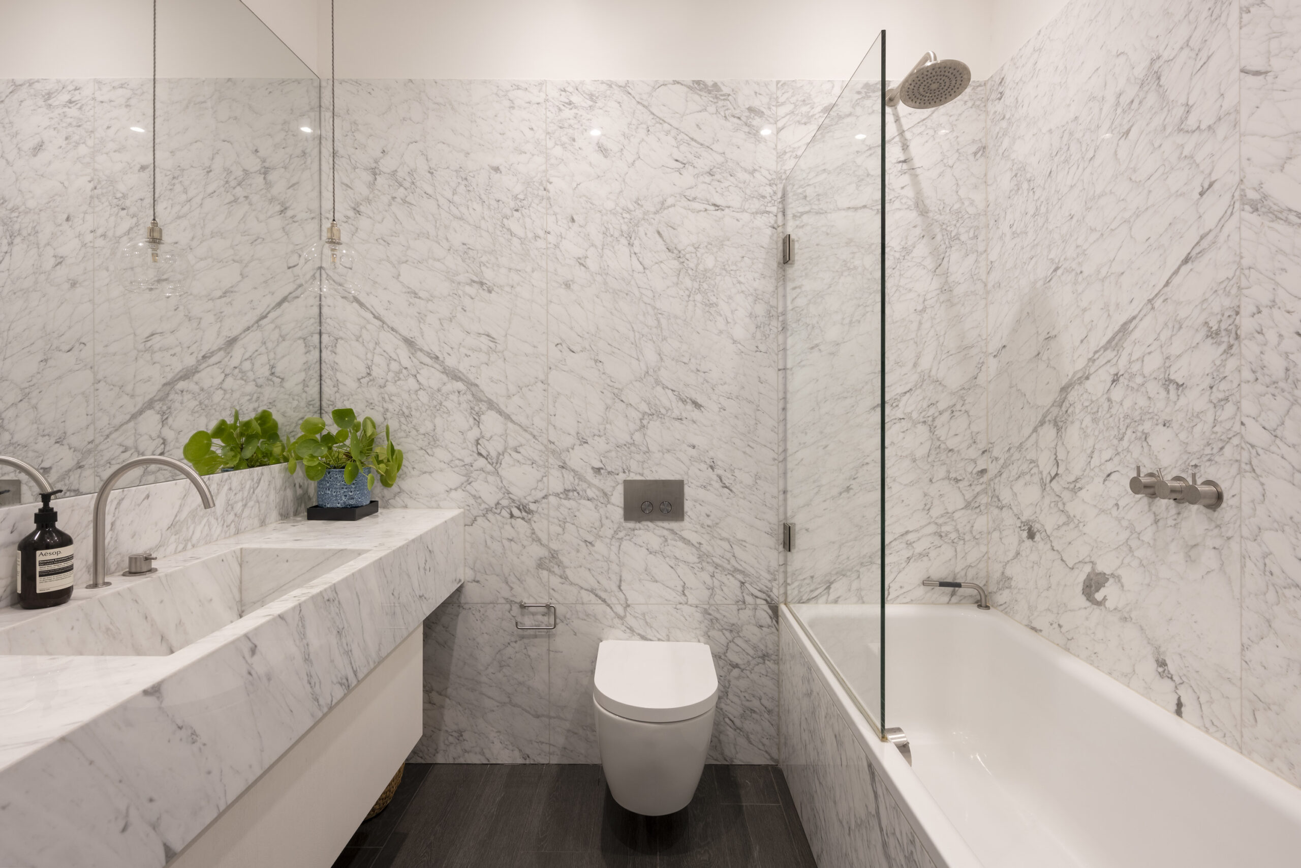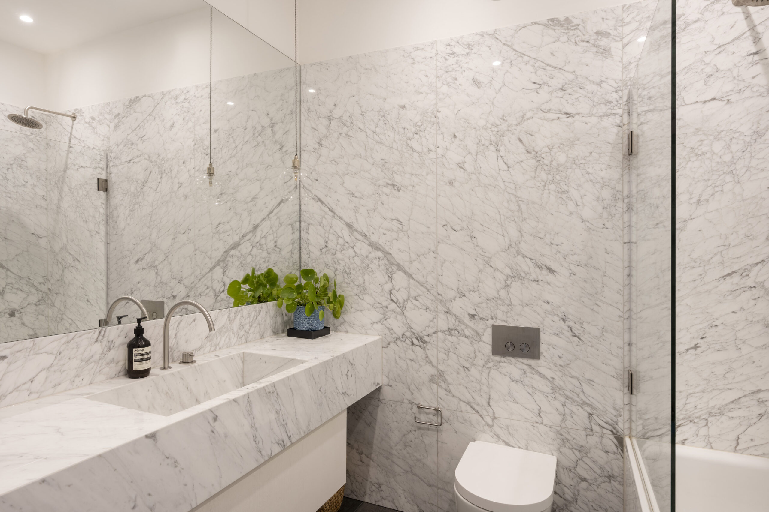 The master bedroom is bright and serene. There’s a softness here, a tranquility, echoed by the drifting leaves and petals of the trees beyond. Neatsmith fitted wardrobes in rich brown provide strength and authority, balancing the masculine and the feminine. The en-suite attached is a decadent expression of glistening white marble. The second bedroom is perfect for use as a guest bedroom, nursery or study.